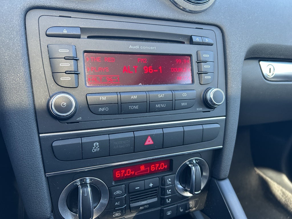 It offers Automatic Climate Control for personalized comfort. The leather seats in this vehicle are a must for buyers looking for comfort, durability, and style. Maintaining a stable interior temperature in the Audi A3 is easy with the climate control system. This small car has a 4 Cyl, 2.0L high output engine. Front wheel drive on this model gives you better traction and better fuel economy. It has an elegant black exterior finish. Electronic Stability Control is one of many advanced safety features on the vehicle. Easily set your speed in this model with a state of the art cruise control system. Increase or decrease velocity with the touch of a button. With a diesel engine you will be pleased with the power, torque, and fuel efficiency gains. The fog lights cut through the weather so you can see what's ahead. The high efficiency automatic transmission shifts smoothly and allows you to relax while driving.